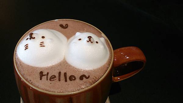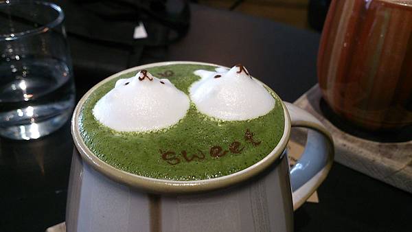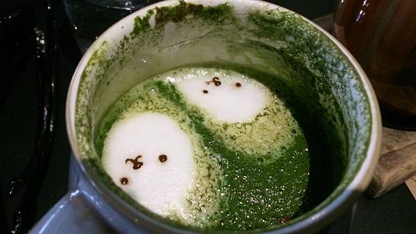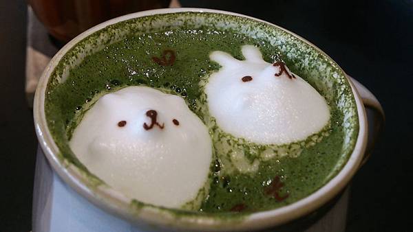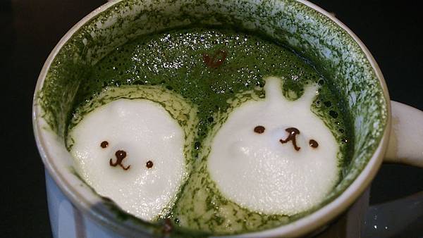 來囉~~拉花ㄟ~~可愛的拉花,今天點這杯是抹茶嘎逼,上面有立體的兔子