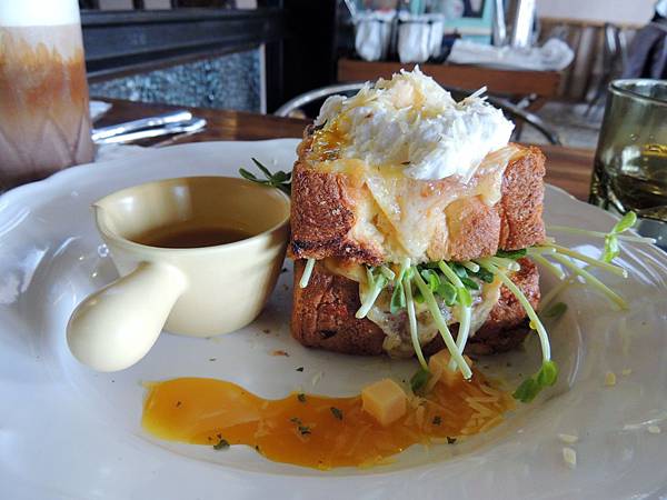這道超推薦的~~整個好吃到爆表,丹麥可頌麵包外酥內軟,起士到位,蛋更絕了~~整個大大加分