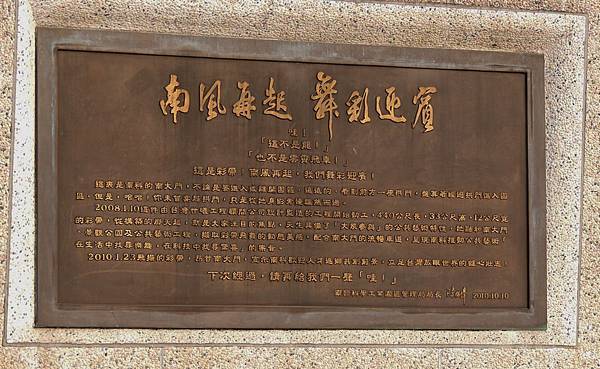 黃絲帶其實是鋼構大型藝術品,長440公尺,高33公尺,寬12公尺。"南風再起,舞彩迎賓"
