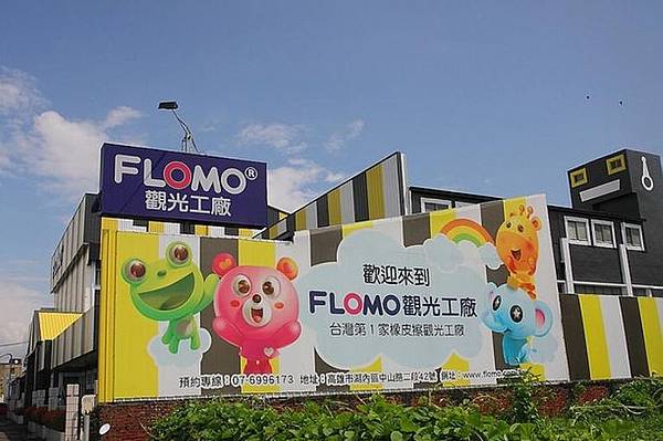 位於高雄湖內,從高雄往台南的省道上就會看到一家黑黃白直條的建築物,這就是FLOMO的觀光工廠囉