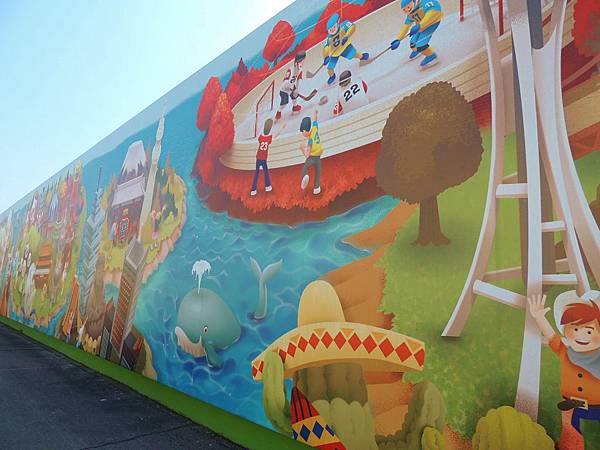 當天我們是停在後方停車場,一停好車往園區走就先看到一幅大大的牆畫,也是拍照的好地點