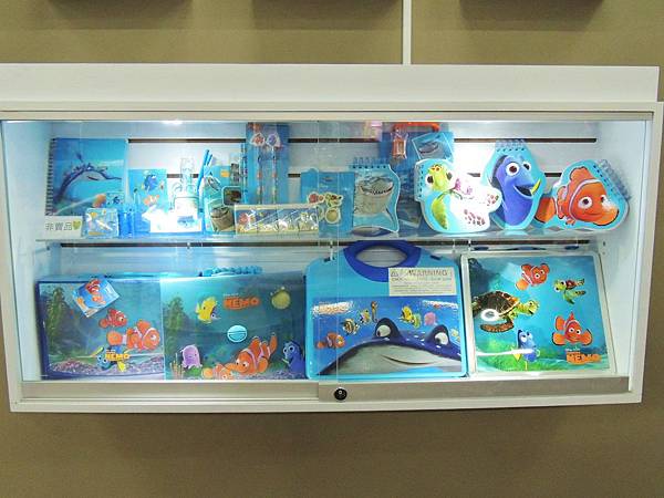 接著會看到二邊牆上有幾個櫃子佈置了主題性的文具