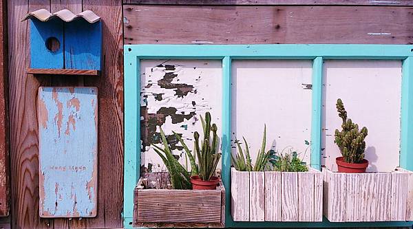 從仙人掌大門進來後,左邊就是點餐櫃台,要先進去找位置再來點餐,我一進來是被店家的裝置藝術吸引而不停的拍照,店家用廢棄木材,石頭,漂流木,身邊垂手可得的物品....打造出這樣一個極具創意的文創空間