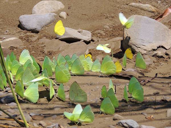 河床上石頭或草堆邊即會看成群的蝶聚集