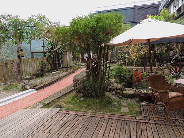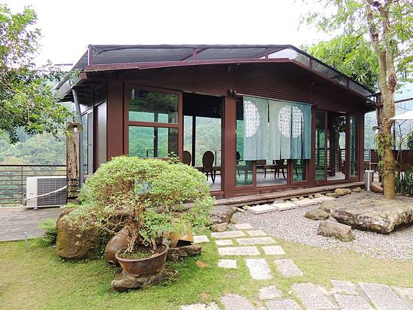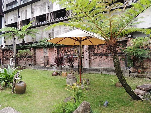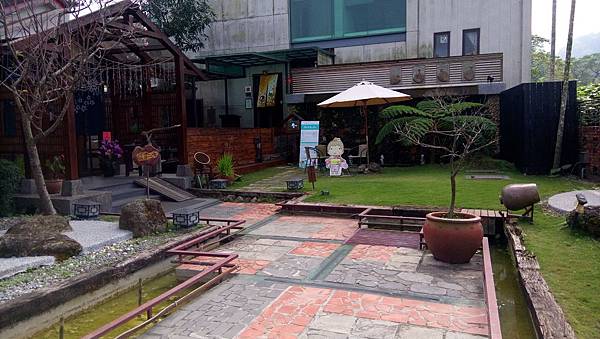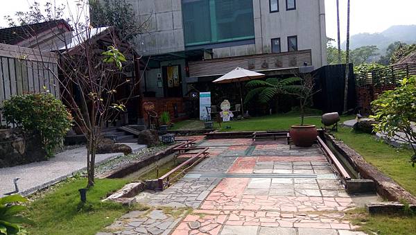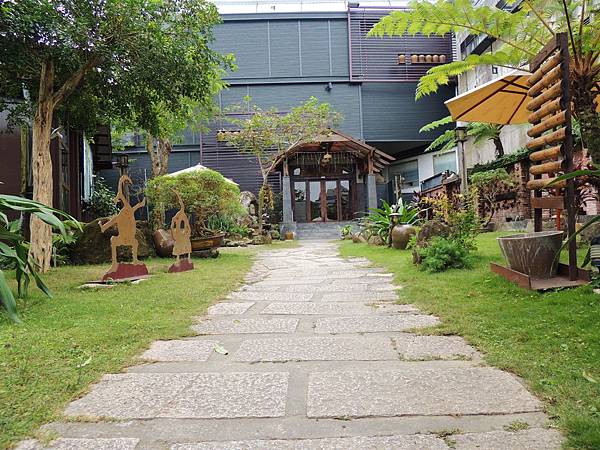首先映入眼簾的先是讓人超放鬆的日式造景,綠色大草坪,白色碎石,水瀑牆