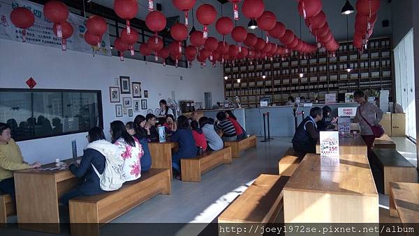 室內區很多人,進門後服務人員會給每人一塊鳳梨酥及一杯茶,可坐著休息品嘗一下,喜歡就自行到櫃檯去買