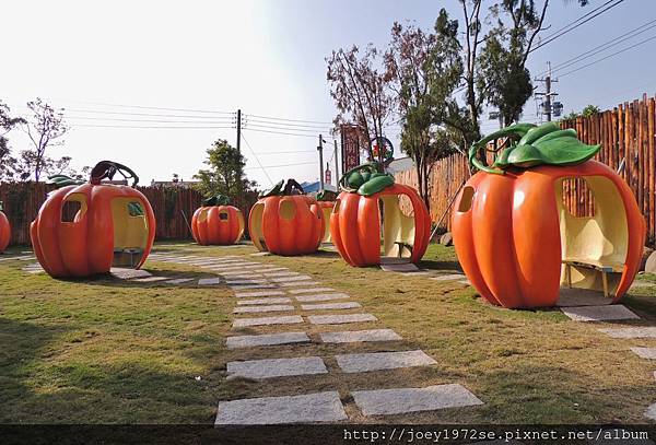 可愛的南瓜步道,還可以進南瓜裡坐呢~可愛耶~