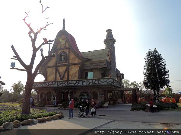 城堡上還有一小窗,露出一隻可愛的小熊,一棵樹上停著許多貓頭鷹,一旁還有南瓜步道,光是入門這裡就讓人駐足很久