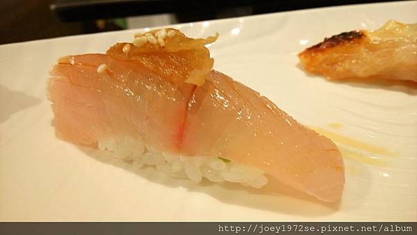 干貝也稍微炙燒過,在點綴水果醋蘿蔔泥及一些紅芽,本身就愛吃干貝,這干貝讓我印象深刻,干貝大顆,加上蘿蔔泥一起吃好清爽,咀嚼中都能感受每一口的海味