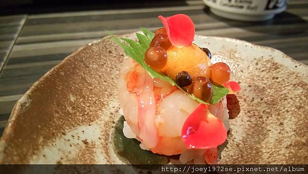 胭脂蝦的蝦肉扎實Q彈,咀嚼中釋放出甜味,海膽等級算高,沒有討厭的味道,一口放入嘴巴除了滿足口慾更有飛上天的飄飄然,睜開眼卻覺得置身於大海中的暢快