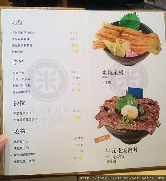 menu有質感,內頁的品項也以丼飯的照片為主,這樣的設計讓人一眼就看到重點,餐名不再只是文字而是用圖片,相較有些店只寫餐名卻不知道實際內容物包含啥好多了