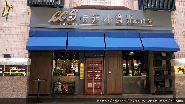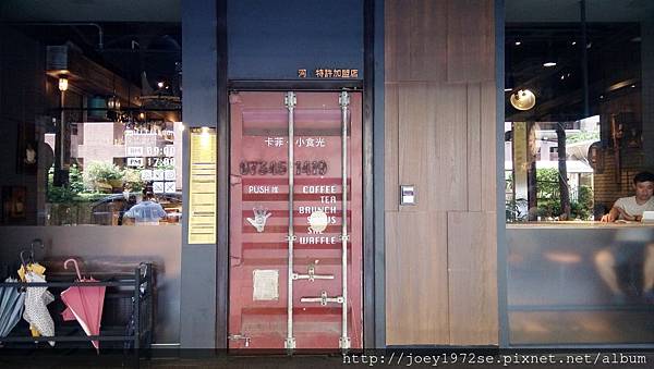 今天來到河堤社區裡的"卡菲小時光",約九點半抵達所以裡面客人還不多,門面簡單就屬貨櫃門較具特色