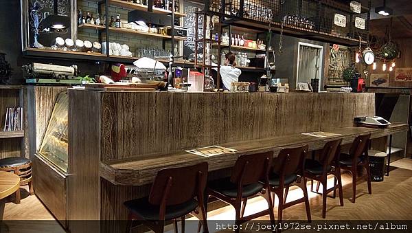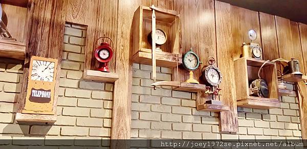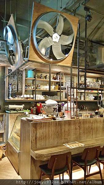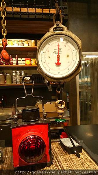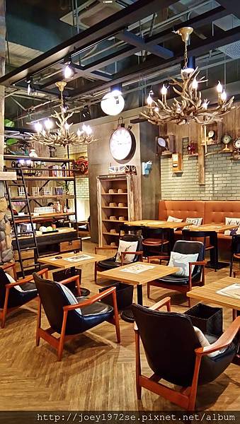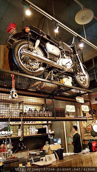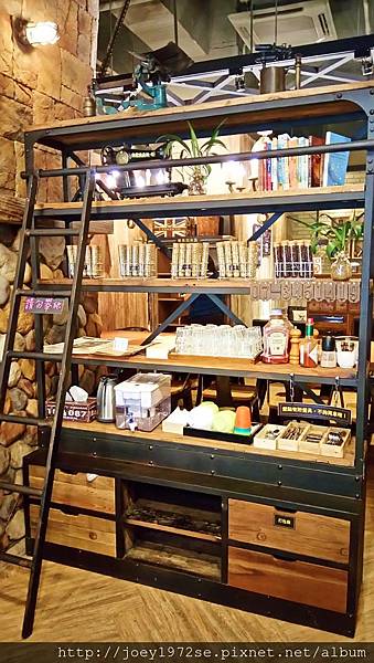 這一區布置的家私很特別,後面的牆上掛滿了工具喔,椅子也就搭鐵椅,在適合不過了