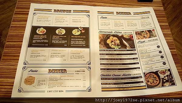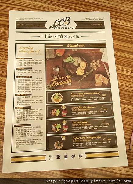 menu皆已放在桌上,就像報紙般似的,只是上面寫的是餐點不是新聞啦,這樣打開來看要選哪個餐點時就頗有放假的悠閒感了,還有餐點的圖片可參考,整份menu看起來好豐富,這裡不收服務費,所以要點餐時要自己去櫃檯點,取餐也是自己去櫃檯拿喔