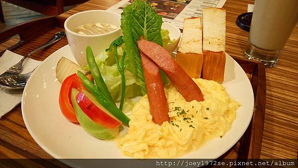 歐姆滑蛋吐司佐德腸$ 180。滑蛋好好吃喔,濃醇香的口感,搭上吐司,青菜,香腸,及一碗濃湯,在簡單不過的早餐,但愈是簡單的東西更容易顯出廚師的功力