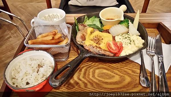 起司蘑菇雞腿排 $280,這道好豐富阿~都能當正餐了,有飯有肉有菜有湯,這真的好吃,下次若是要來這吃午餐,我們決定來點這道。。。太適合了。。。