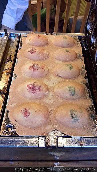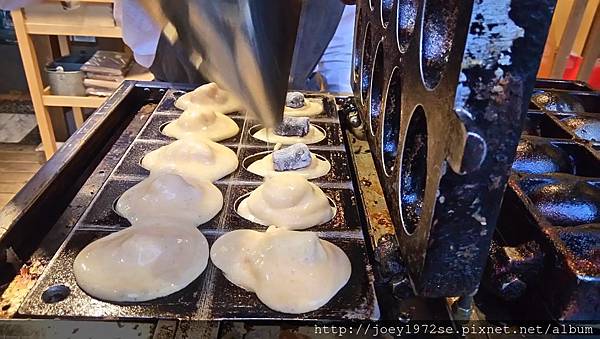 雞蛋糕在ino cafe前方,也有賣冰淇淋喔(當天口味也寫在前方黑板上),在窗口直接向服務人員點你要的雞蛋糕口味後,點完會給你一個號碼牌,再告訴你幾分鐘後再來拿。可以看到製作雞蛋糕的流程
