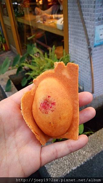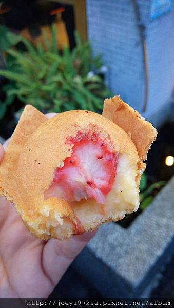邊邊的餅皮好脆~隱約都看到草莓了~~不過剛做好很燙,吃的時候要小心