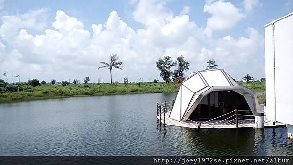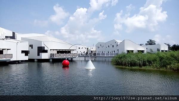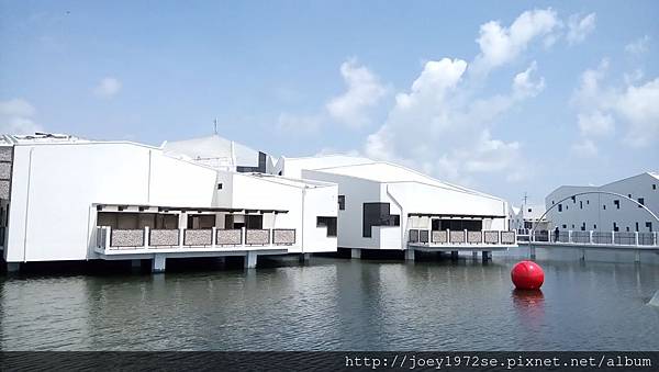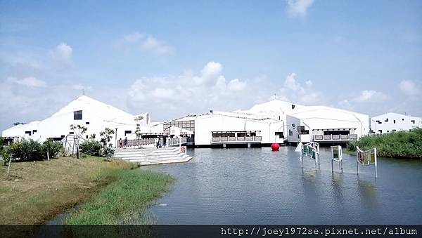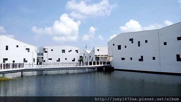 水上屋、白色建築物、藍天、白雲,此等美景在台南,不在國外喔,且是遊客中心呢!