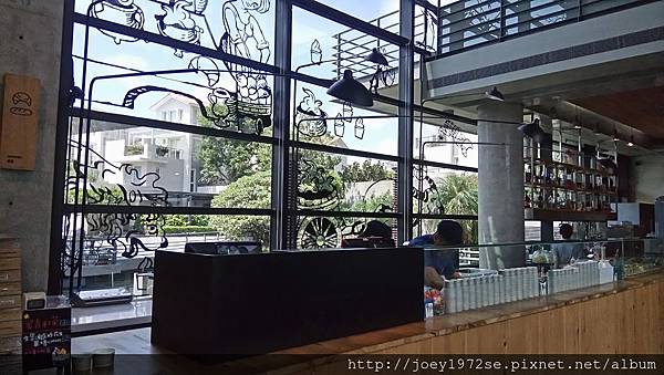 清水模外牆,挑高三層,空間寬敞,有超大落地窗,還有畫作,在這空間吃冰感覺好有藝術喔