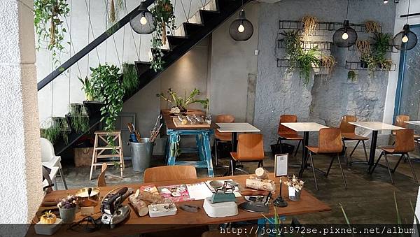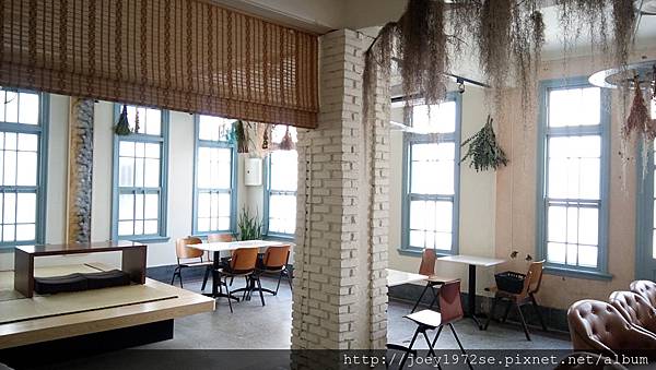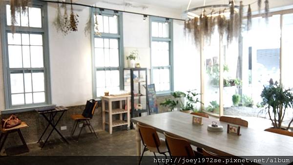 熨斗目花咖啡,有一、二樓,雖有浪漫的乾燥花與綠色植栽,但也保留了老屋的特色,整體空間明亮舒適,用餐或喝咖啡都很享受!