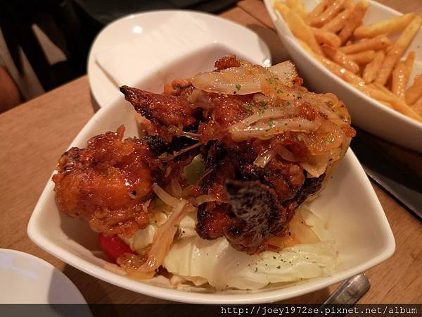 結果是直接淋上,出奇的好吃,薯條很脆,很搭,這個適合下午茶,朋友小聚時來上一盤