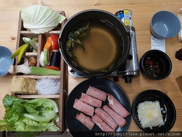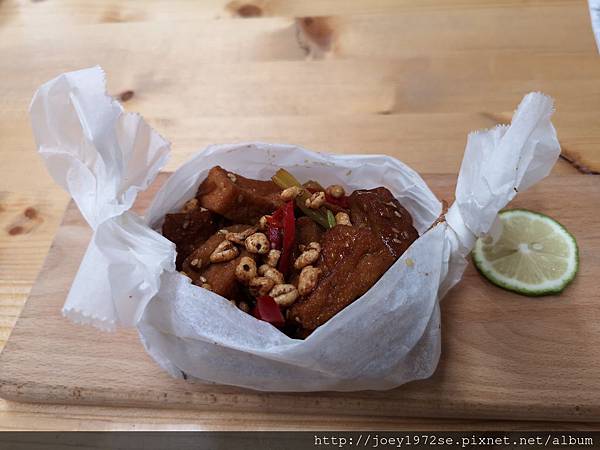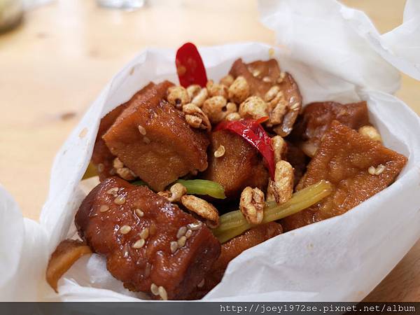 我們點了一個香草豬肉火鍋($380)、紙包滷味($150)。火鍋就真的是一般啦,附餐有綠豆仁飯和飲料(茶、咖啡、果汁三擇一)