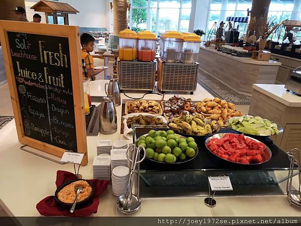 早餐從6點半到10點,越南與台灣時差一小時(比台灣慢一小時),所以當我們自動醒