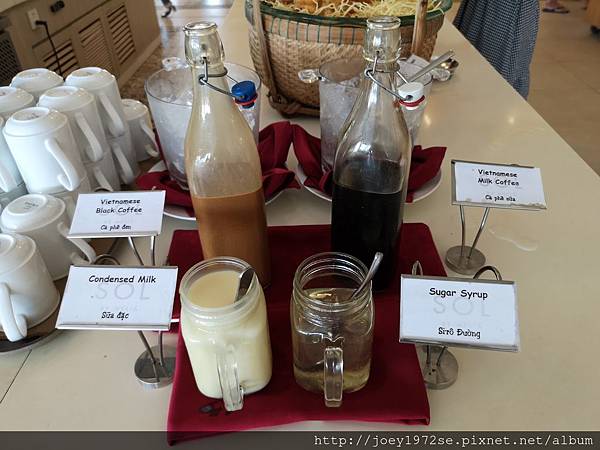 這幾天都喝越南咖啡,餐廳當然也有咖啡機,左邊那瓶就是我每天必喝的咖啡,